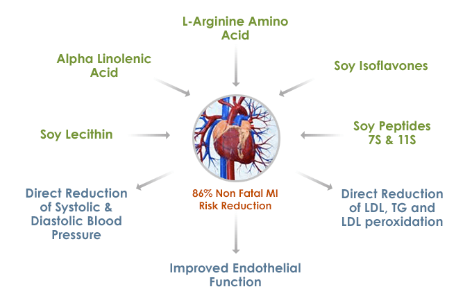 以大豆為基礎科學研究的配方有助於改善人類健康和慢性疾病,如高膽固醇血症,高血壓,糖尿病,癌症治療,膝關節保健,免疫系統紊亂,腸胃健康(胃,胃食管反流病,慢性便秘,腸易激綜合徵),皮膚健康包括嚴重的牛皮癬和無須節食減肥