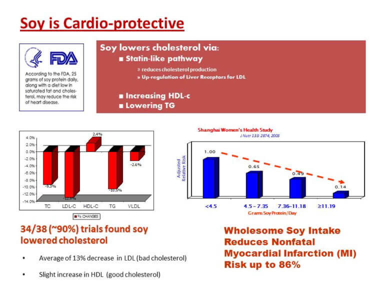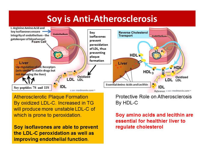 The results showed a reduction of 40.66% and 42.00% in total cholesterol and of 42.05% and 56.15% in LDL cholesterol after treatment for one and two months, respectively. This indicates wholesome soy is a good source of lecithin to help fight cholesterol disorder without any side effect.